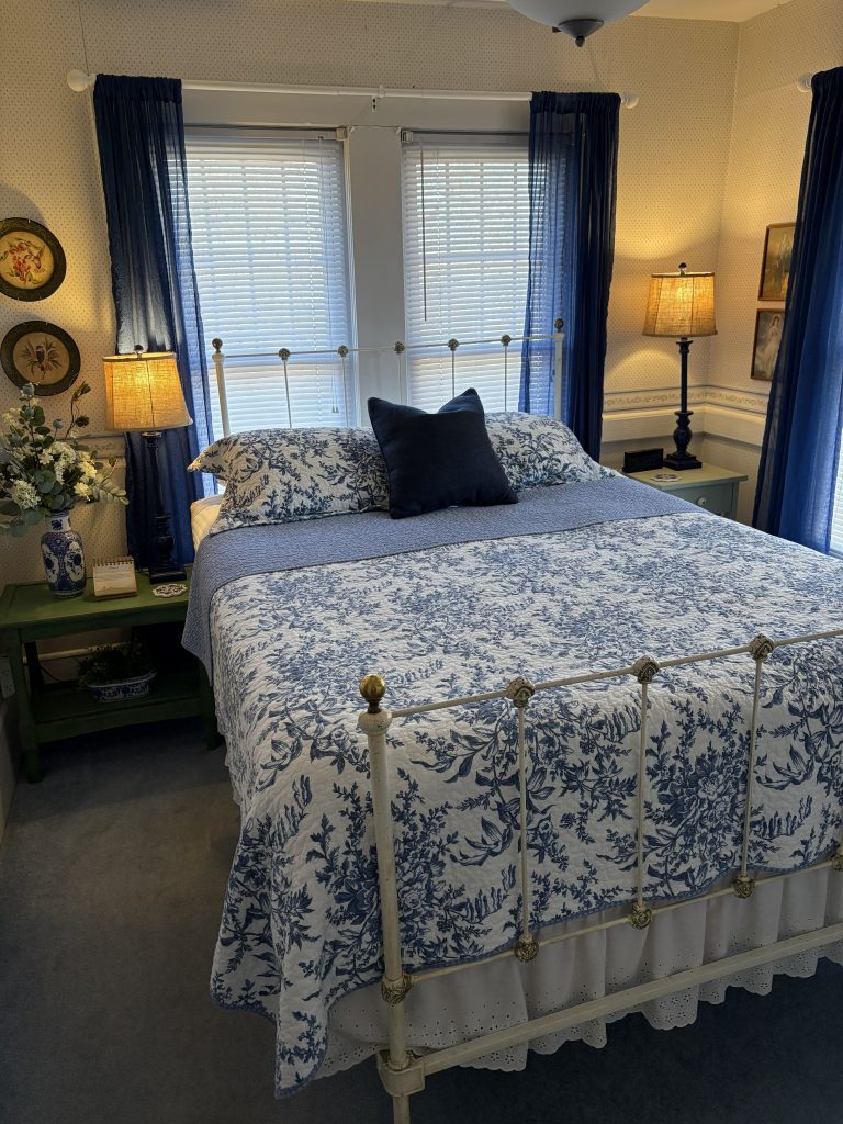 Nathaniel’s Study is a great room for reading and relaxing. Plenty of natural sunlight in the daytime with a queen bed and a twin bed in the adjoining room. This upstairs room has an in-room bathroom with shower.